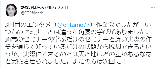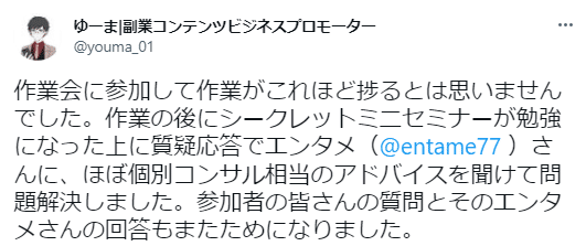 エンタメワールドのセミナーや作業会に参加した方の喜びの声