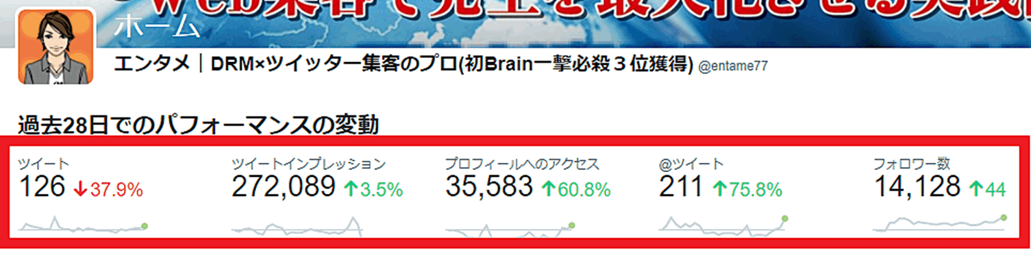 1日3ツイートくらいでもこのくらいのインプレッション27万超えやプロフィールへ35,000アクセスを集めることも可能です。