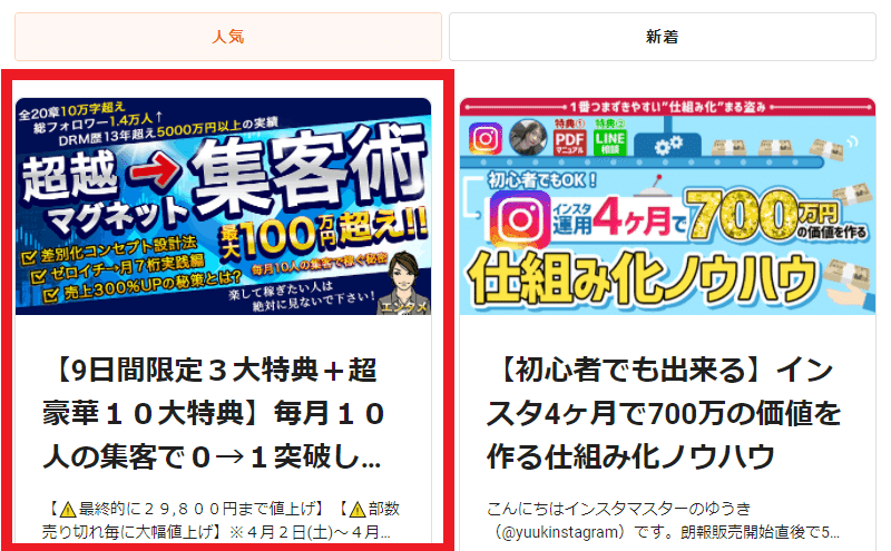 私が作った教材「超越マグネット集客術」をリリースした時は、「ビジネス部門1位」を獲得することが出来ました。