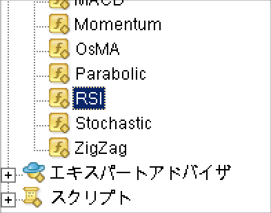 次に「RSI」をダブルクリック。
