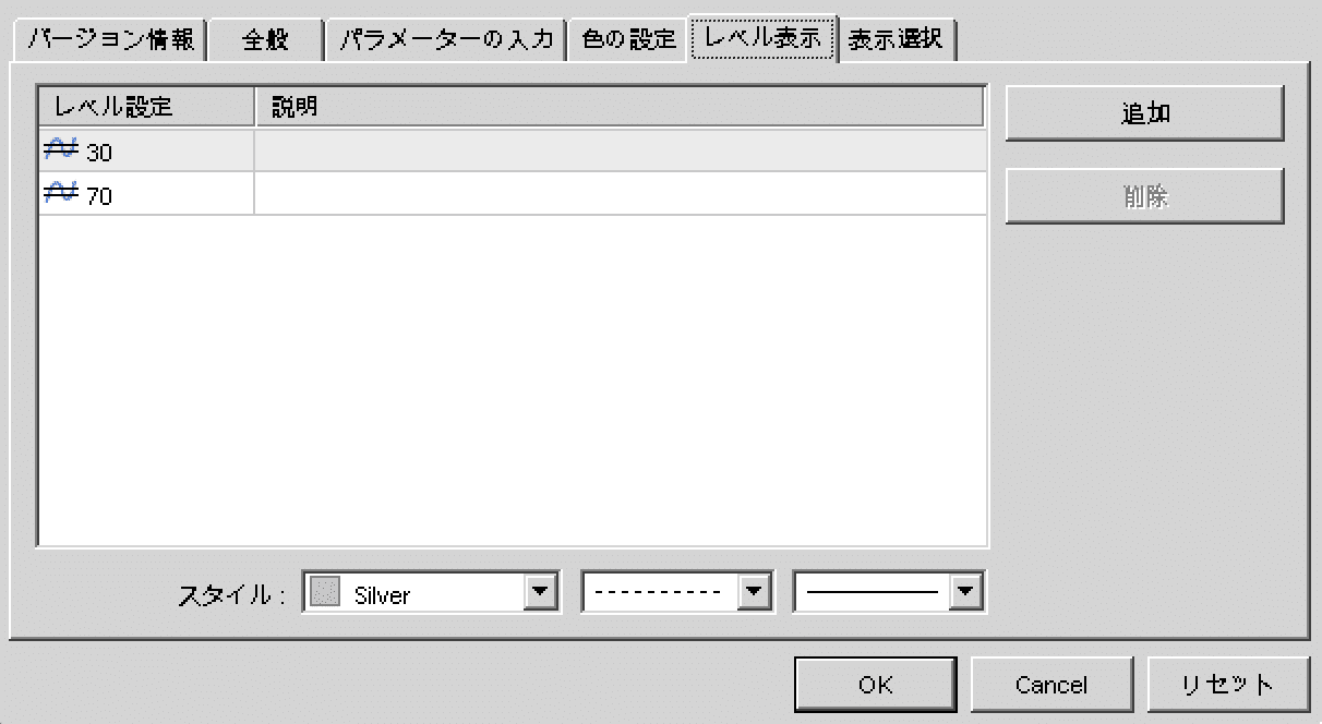 「レベル表示」で値を「30」「70」と設定します。「OK」で閉じます。